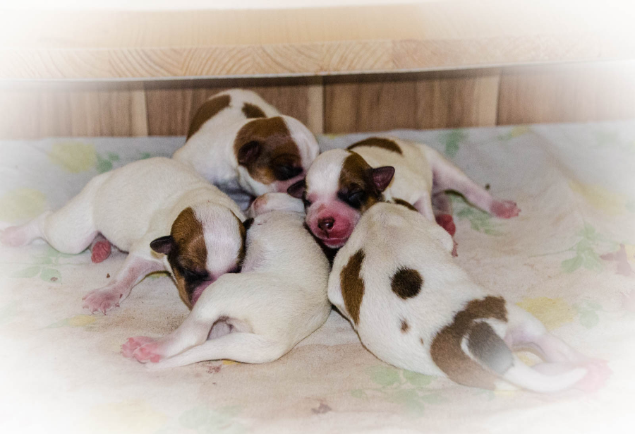 Unsere Welpen nehmen ein rasente Entwicklung. Gestern am 4. Tag nach dem Wurf hatte einige schon mehr als 50 Gramm Gewicht zugelegt. Wir haben den Eindruck, das Ely die Welpen super betreut, und ständig zum Säugen anregt. Wir sind deshalb froh, dass wir nur fünf Welpen haben, denn bei 8-10 Welpen wäre dies wahrscheinlich nicht möglich. Ely hat guten Appetit, und ist aucvh sonst sehr vital, besser konnten wir es uns nicht vorstellen.