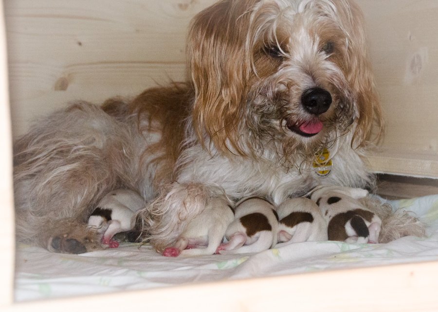 Am Freitagnacht schenkte unsere liebe Ely uns fünf stramme Welpen, die alle putzmunter sind.